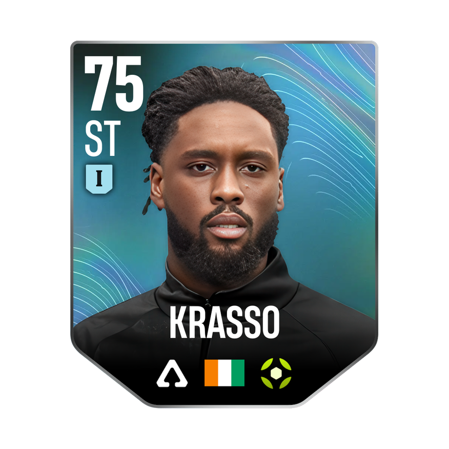 Mastery 1 card is rated 75, he is a 187cm (6’2″) tall ST from Ivory Coast and plays in the league France 1. J. Krasso has 2 cards available in UFL.