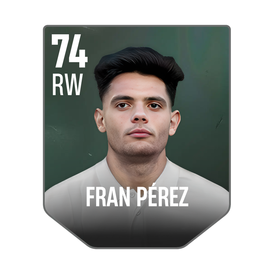 Base card is rated 74, he is a 176cm (5’9″) tall RW from Spain and plays in the league Spain 1. Fran Pérez has 2 cards available in UFL.
