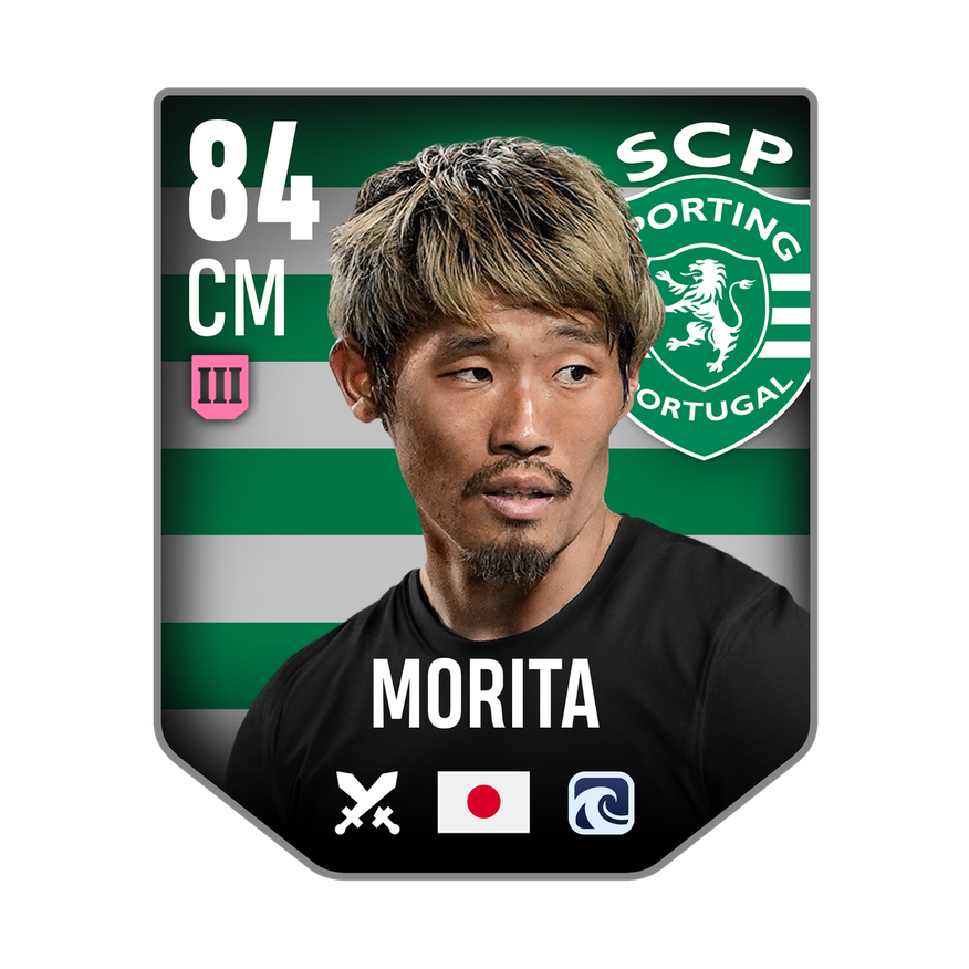 Sporting CP Bundle #2 card is rated 84, he is a 177cm (5’10″) tall CM from Japan and plays in the league Portugal 1. Hidemasa Morita has 4 cards available in UFL. The card also has the