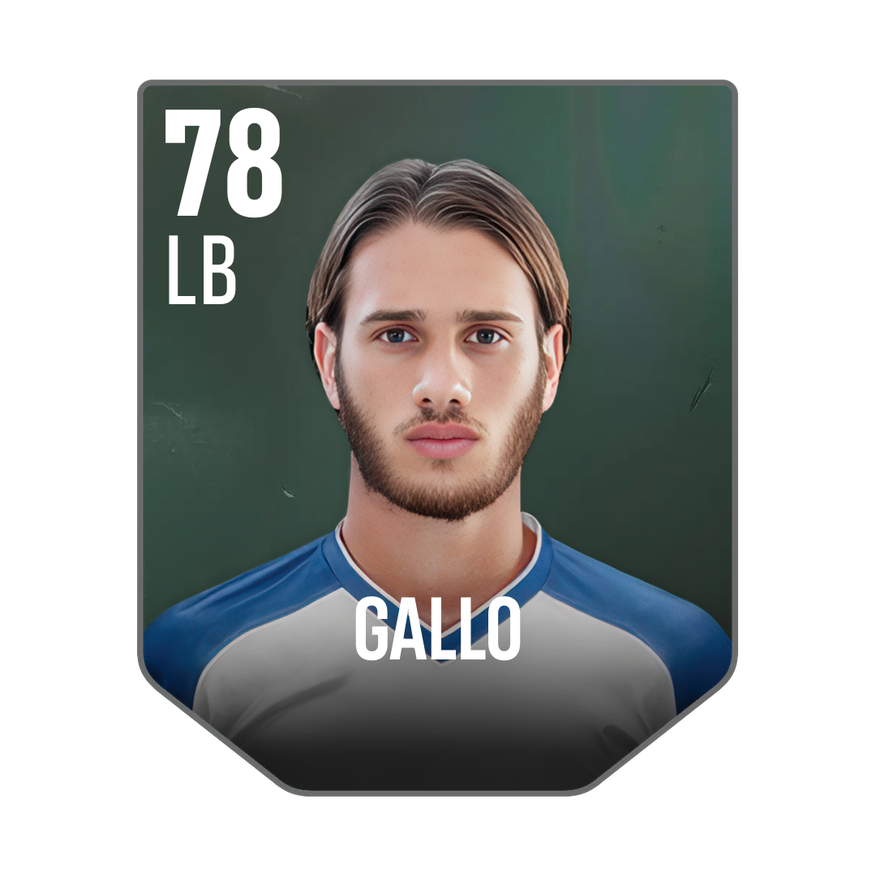 Base card is rated 78, he is a 183cm (6’0″) tall LB from Italy and plays in the league Italy 1. Antonino Gallo has 2 cards available in UFL.