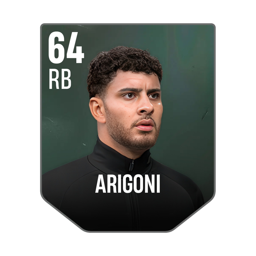 Base card is rated 64, he is a 184cm (6’0″) tall RB from Switzerland and plays in the league Switzerland 1. Allan Arigoni has 1 cards available in UFL.