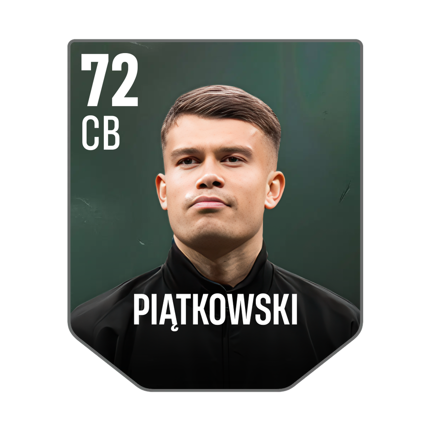 Base card is rated 72, he is a 191cm (6’3″) tall CB from Poland and plays in the league World. Kamil Piątkowski has 2 cards available in UFL.