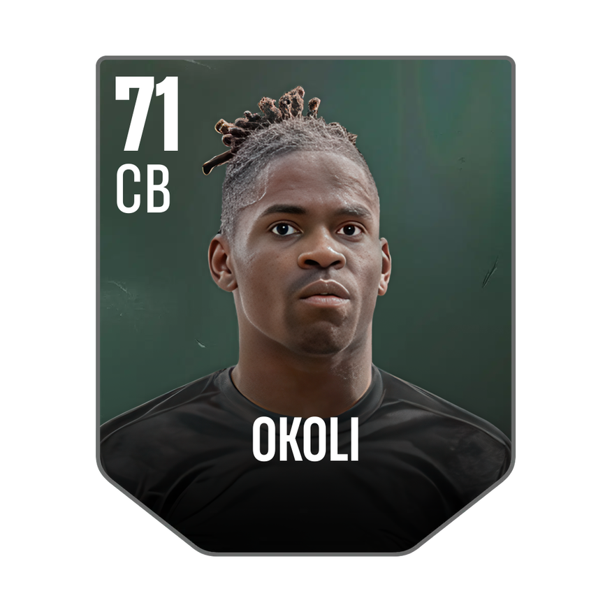 Base card is rated 71, he is a 191cm (6’3″) tall CB from Italy and plays in the league England 2. Caleb Okoli has 2 cards available in UFL.
