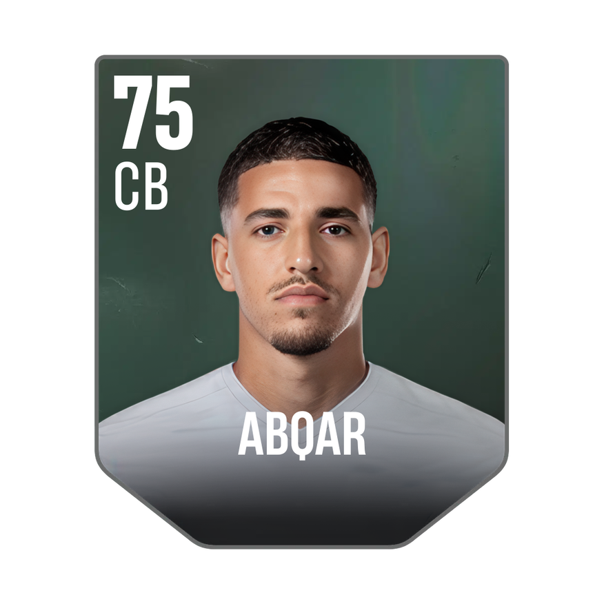 Base card is rated 75, he is a 188cm (6’2″) tall CB from Morocco and plays in the league Spain 1. Abdel Abqar has 2 cards available in UFL.