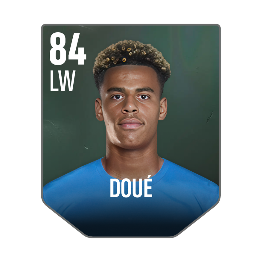 Base card is rated 84, he is a 181cm (5’11″) tall LW from France and plays in the league France 1. Désiré Doué has 5 cards available in UFL.
