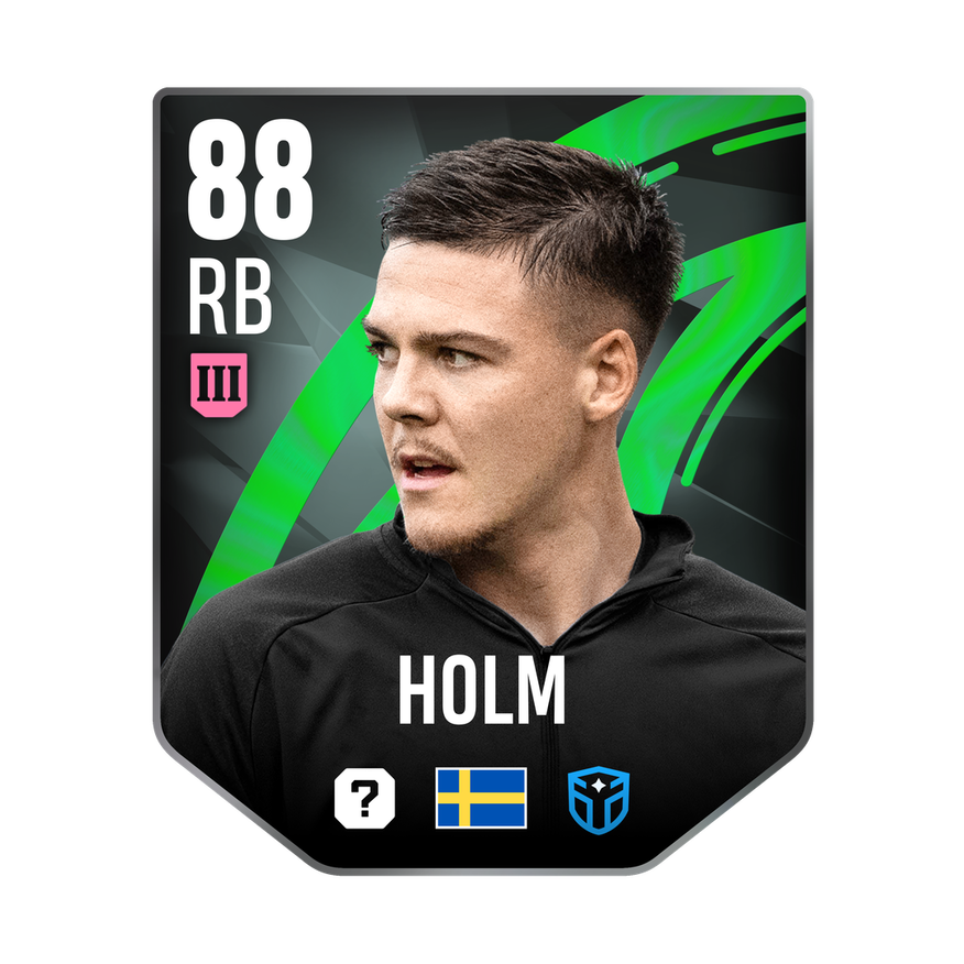 GC Nov #3 | 25 card is rated 88, he is a 191cm (6’3″) tall RB from Sweden and plays in the league Italy 1. Emil Holm has 3 cards available in UFL. The card also has the