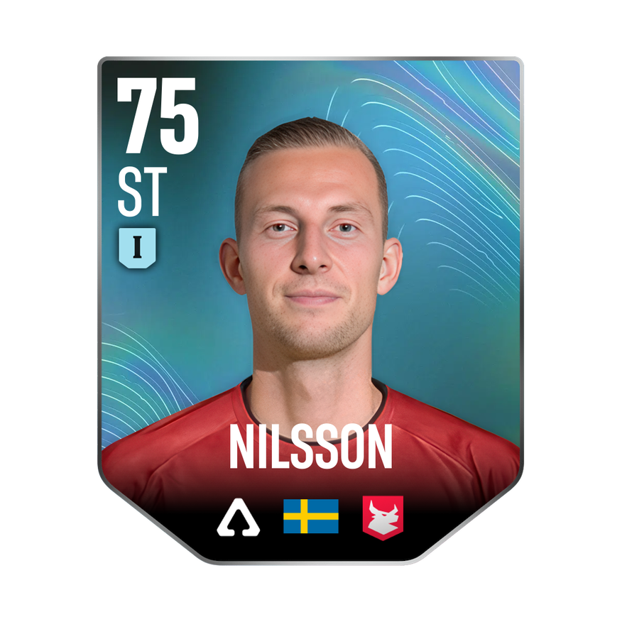 Mastery 1 card is rated 75, he is a 196cm (6’5″) tall ST from Sweden and plays in the league Belgium 1. Gustaf Nilsson has 2 cards available in UFL.