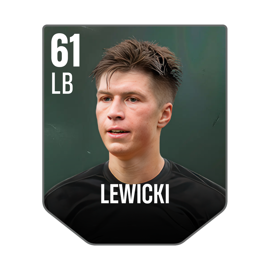 Base card is rated 61, he is a 182cm (6’0″) tall LB from Poland and plays in the league World. Jakub Lewicki has 1 cards available in UFL.