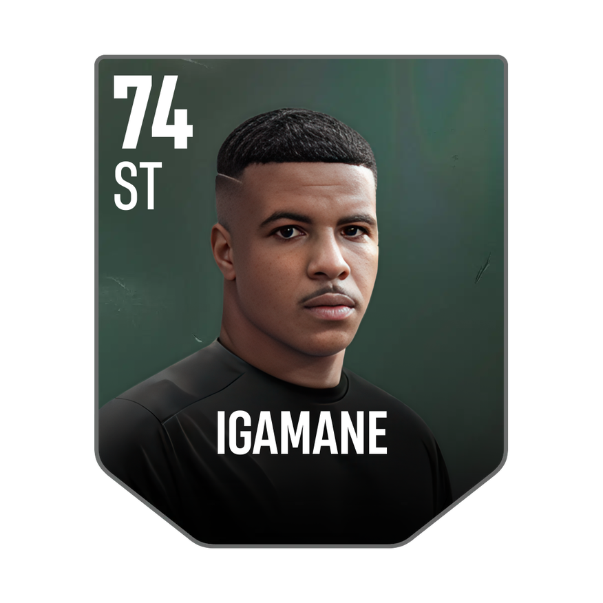 Base card is rated 74, he is a 181cm (5’11″) tall ST from Morocco and plays in the league France 1. Hamza Igamane has 3 cards available in UFL.