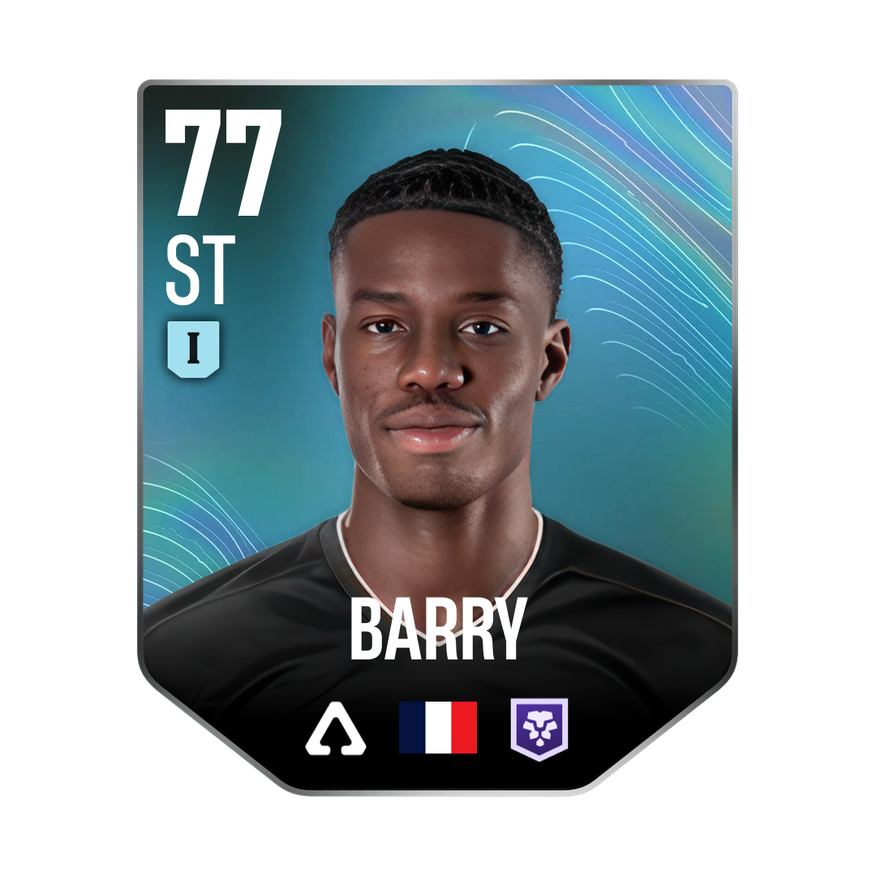 Mastery 1 card is rated 77, he is a 195cm (6’5″) tall ST from France and plays in the league England 1. Thierno Barry has 2 cards available in UFL.