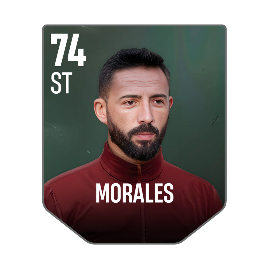Base card is rated 74, he is a 180cm (5’11″) tall ST from Spain and plays in the league Spain 1. José Luis Morales has 2 cards available in UFL.