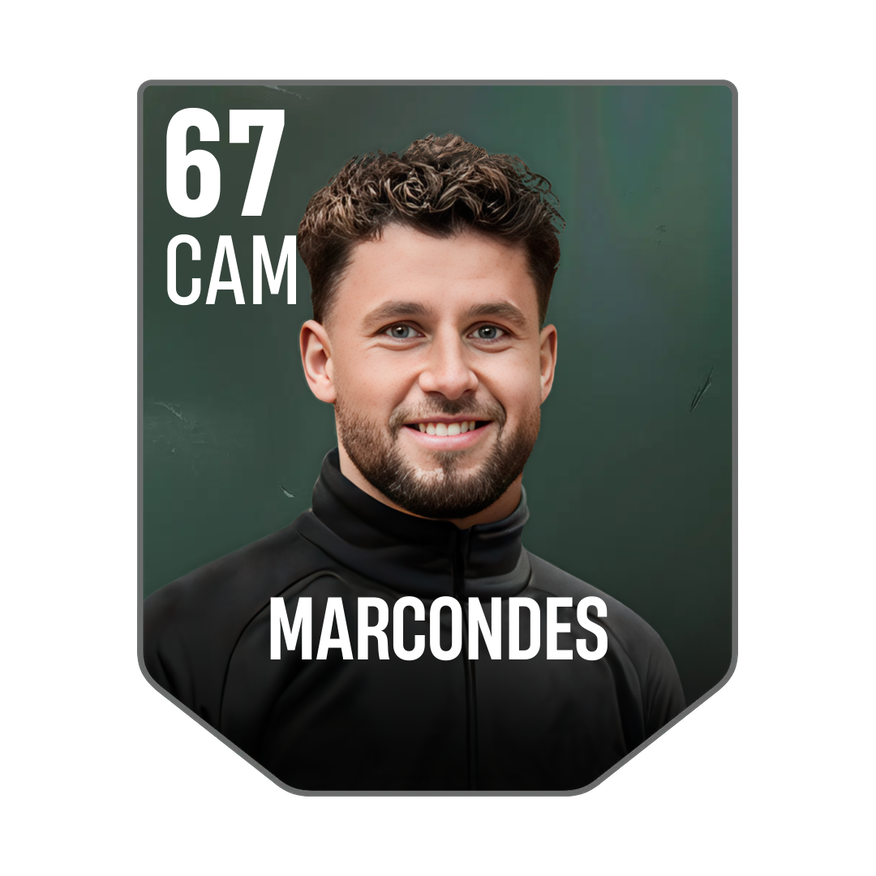 Base card is rated 67, he is a 182cm (6’0″) tall CAM from Denmark and plays in the league England 2. Emiliano Marcondes has 1 cards available in UFL.