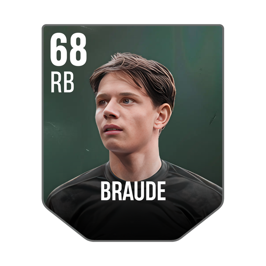Base card is rated 68, he is a 178cm (5’10″) tall RB from Norway and plays in the league Netherlands 1. Oliver Braude has 1 cards available in UFL.