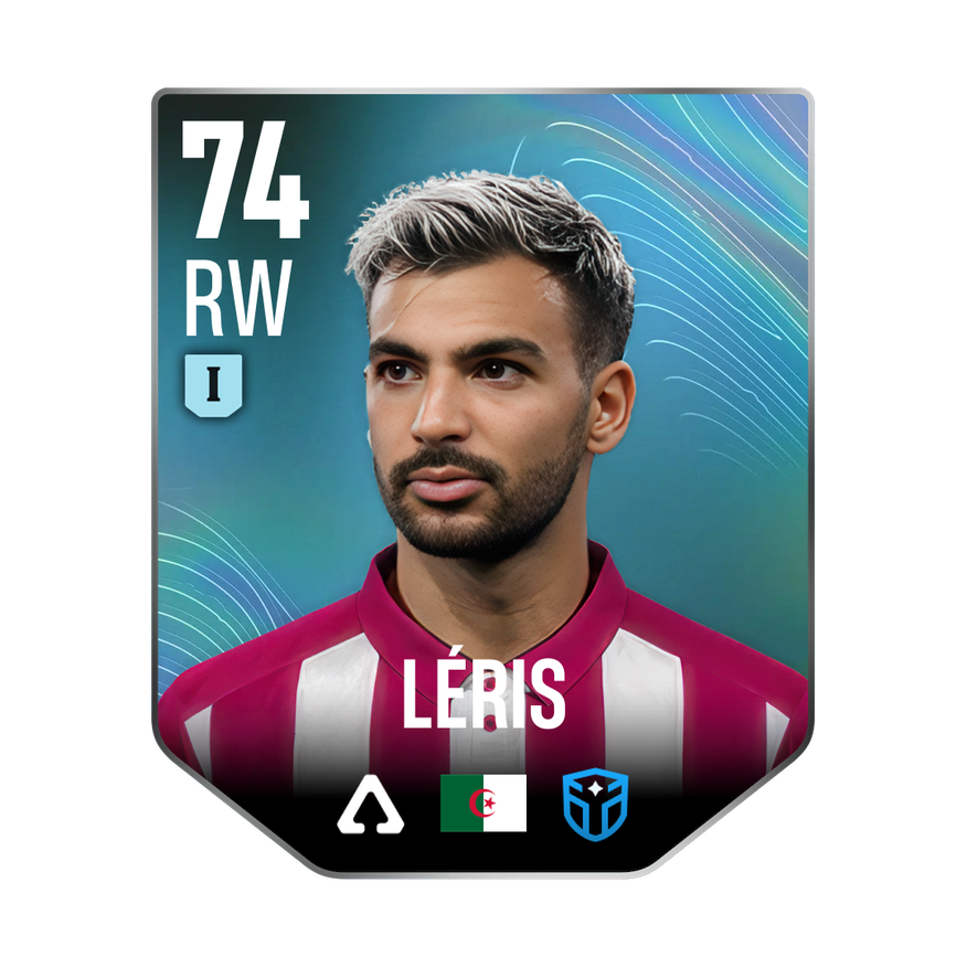 Mastery 1 card is rated 74, he is a 186cm (6’1″) tall RW from Algeria and plays in the league Italy 1. Mehdi Léris has 2 cards available in UFL.