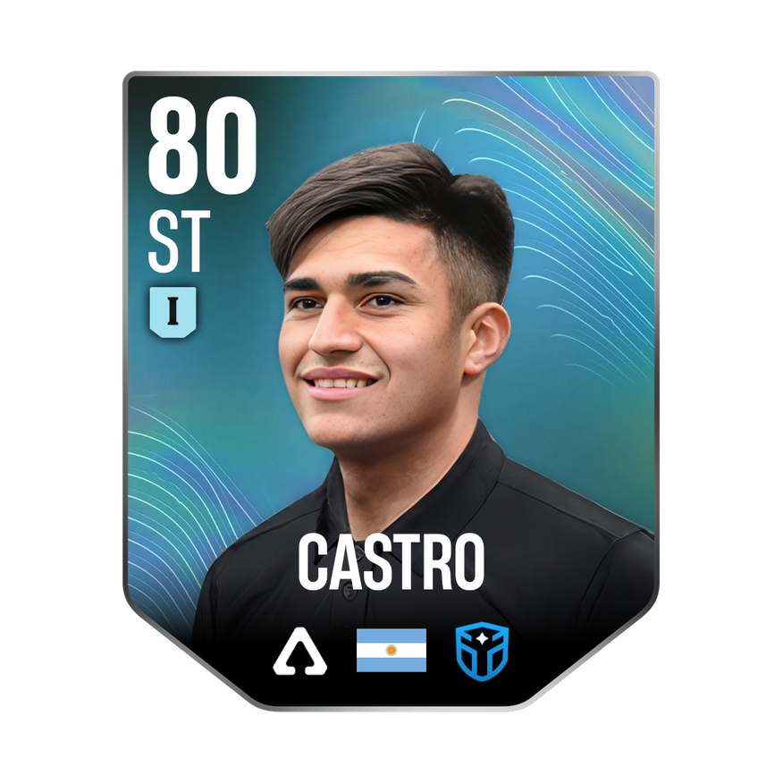 Mastery 1 card is rated 80, he is a 179cm (5’10″) tall ST from Argentina and plays in the league Italy 1. Santiago Castro has 2 cards available in UFL.