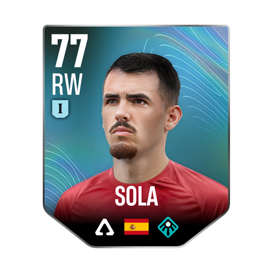 Mastery 1 card is rated 77, he is a 178cm (5’10″) tall RW from Spain and plays in the league Spain 2. Álex Sola has 2 cards available in UFL.