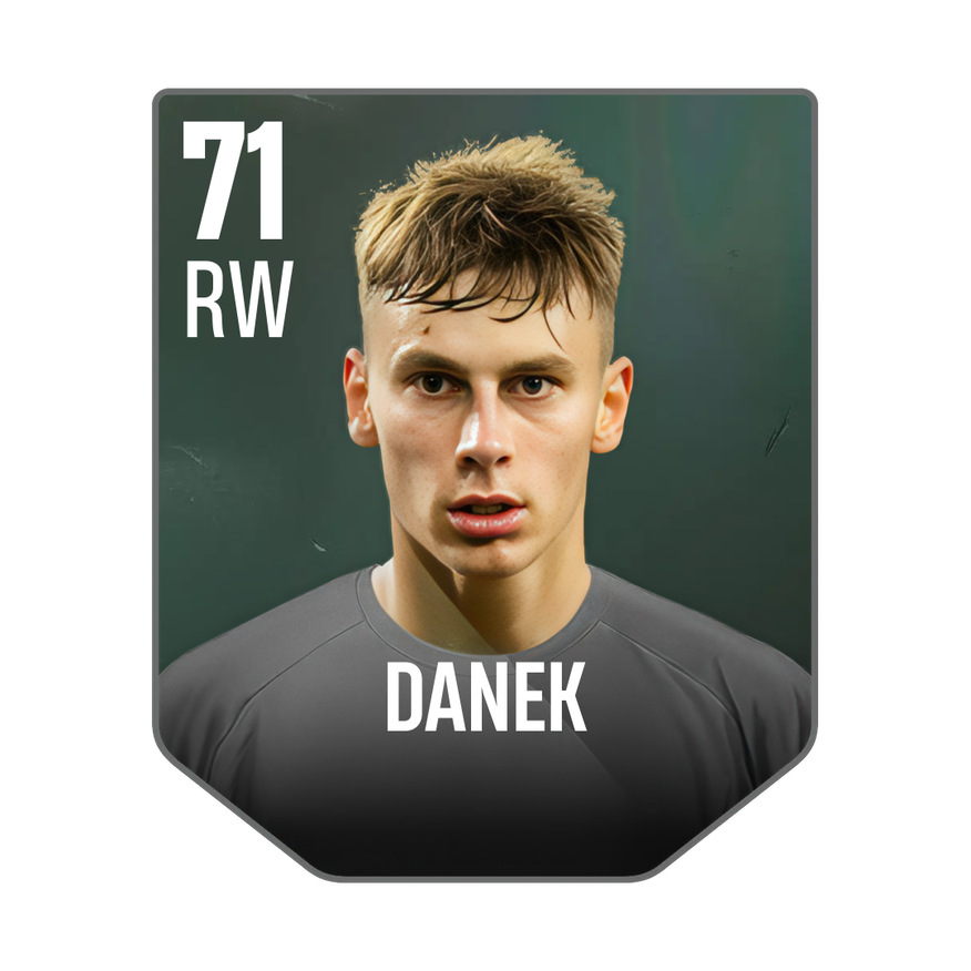 Base card is rated 71, he is a 182cm (6’0″) tall RW from Czech Republic and plays in the league Austria 1. Krystof Danek has 2 cards available in UFL.
