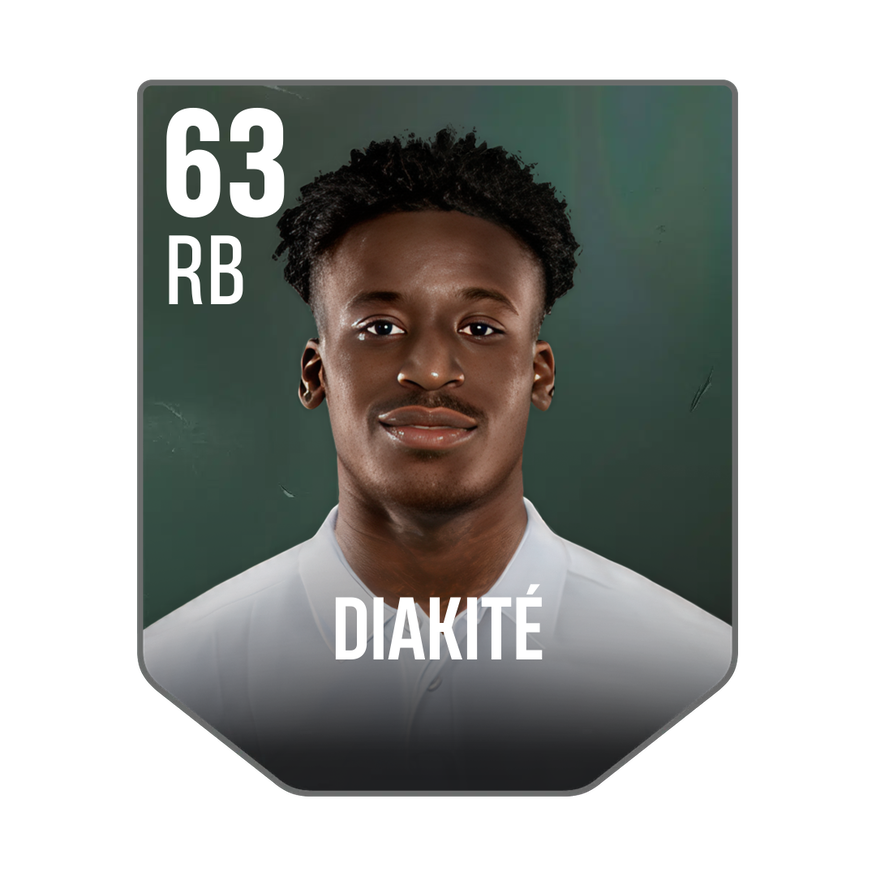 Base card is rated 63, he is a 180cm (5’11″) tall RB from Guinea and plays in the league Belgium 1. Ibrahim Diakité has 1 cards available in UFL.