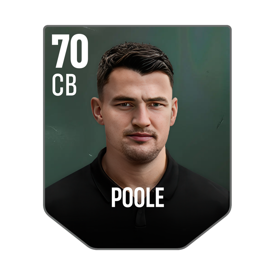 Base card is rated 70, he is a 180cm (5’11″) tall CB from Wales and plays in the league England 2. Regan Poole has 2 cards available in UFL.