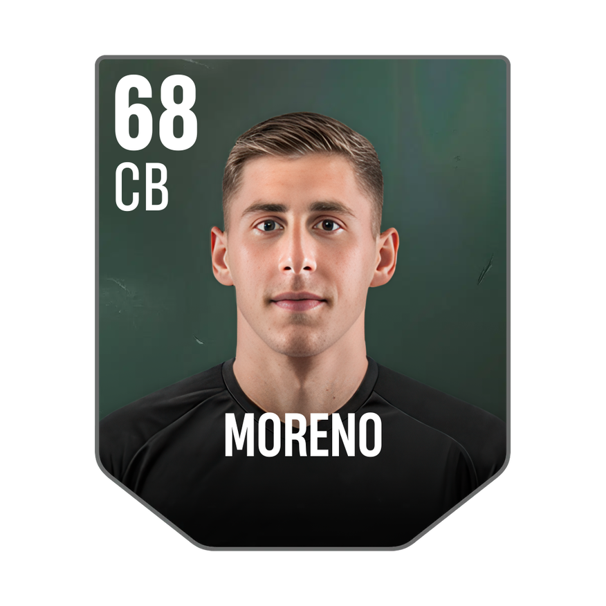 Base card is rated 68, he is a 184cm (6’0″) tall CB from Spain and plays in the league Spain 2. Jorge Moreno has 2 cards available in UFL.