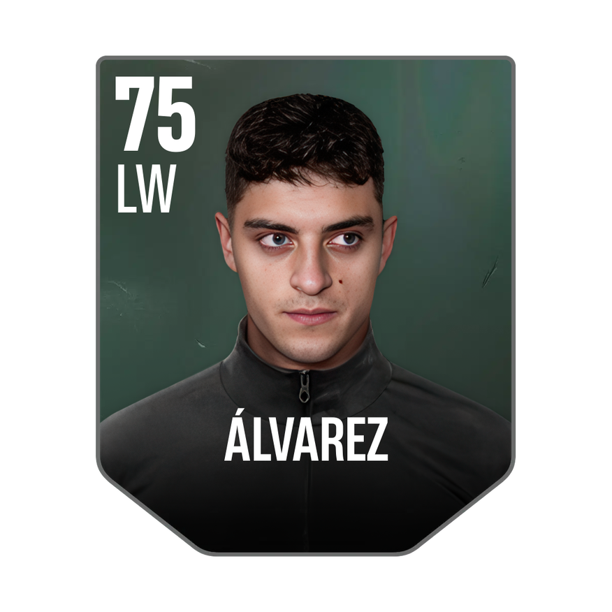 Base card is rated 75, he is a 176cm (5’9″) tall LW from Spain and plays in the league Spain 1. Hugo Álvarez has 2 cards available in UFL.
