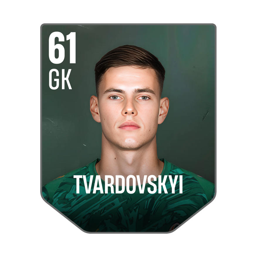 Base card is rated 61, he is a 206cm (6’9″) tall GK from Ukraine and plays in the league World. Denys Tvardovskyi has 1 cards available in UFL.