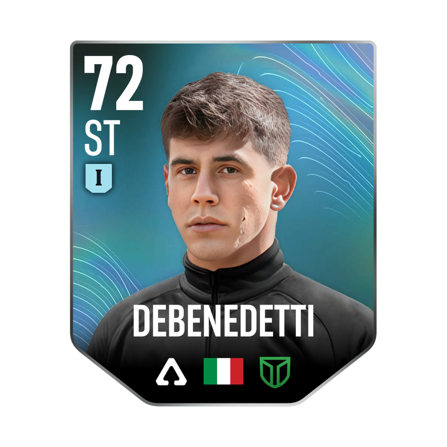 Mastery 1 card is rated 72, he is a 190cm (6’3″) tall ST from Italy and plays in the league Italy 2. A. Debenedetti has 2 cards available in UFL.