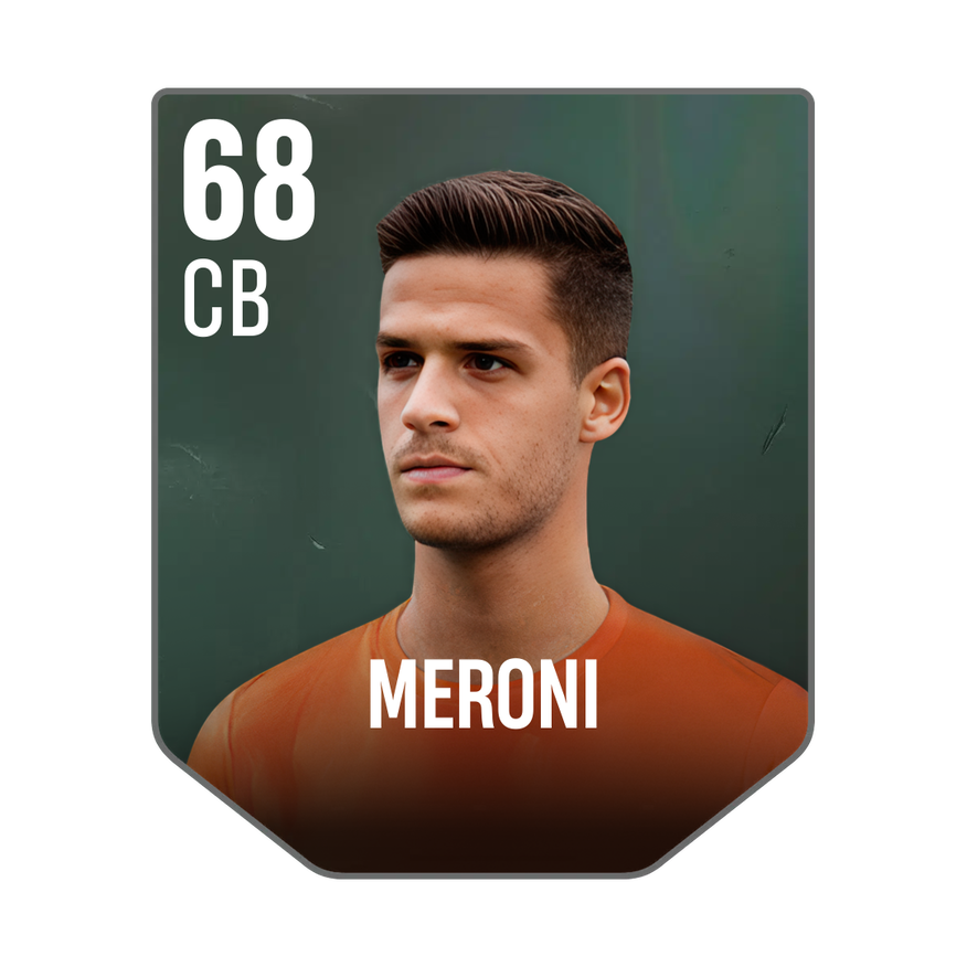 Base card is rated 68, he is a 188cm (6’2″) tall CB from Italy and plays in the league Italy 2. Andrea Meroni has 1 cards available in UFL.