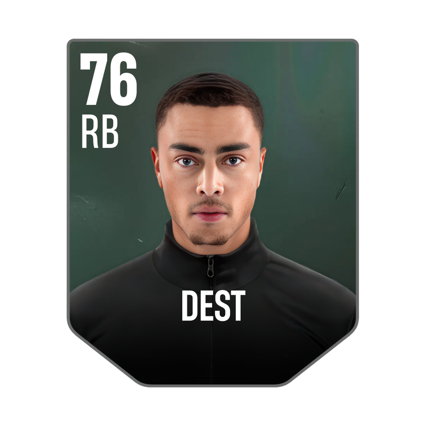 Base card is rated 76, he is a 173cm (5’8″) tall RB from United States and plays in the league Netherlands 1. Sergiño Dest has 3 cards available in UFL.