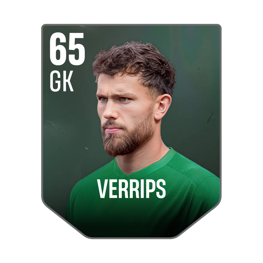 Base card is rated 65, he is a 195cm (6’5″) tall GK from Netherlands and plays in the league Belgium 1. Michael Verrips has 2 cards available in UFL.