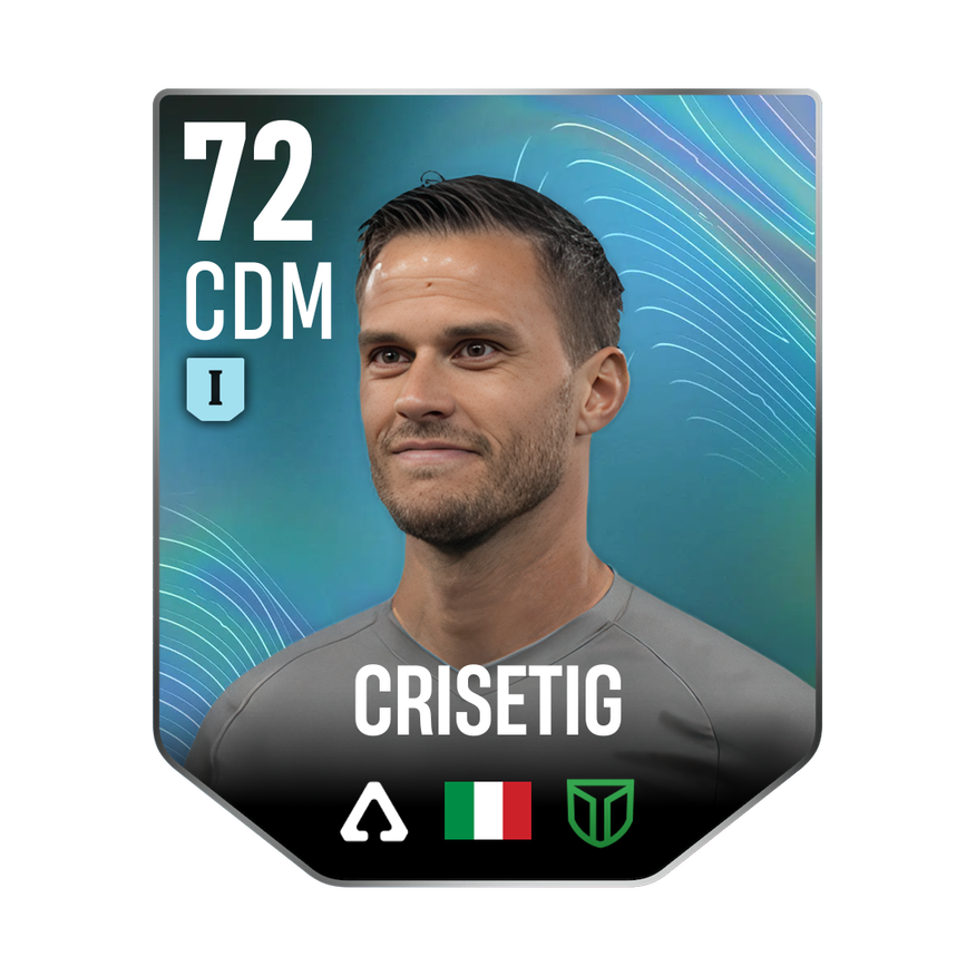 Mastery 1 card is rated 72, he is a 184cm (6’0″) tall CDM from Italy and plays in the league Italy 2. Lorenzo Crisetig has 2 cards available in UFL.