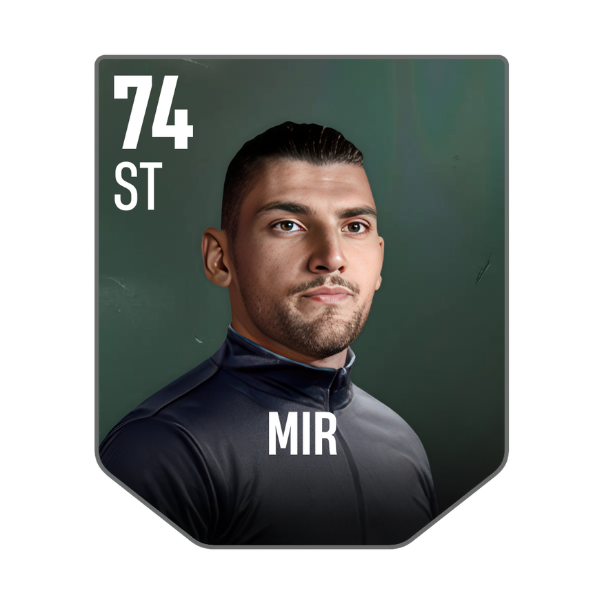 Base card is rated 74, he is a 191cm (6’3″) tall ST from Spain and plays in the league Spain 1. Rafa Mir has 2 cards available in UFL.
