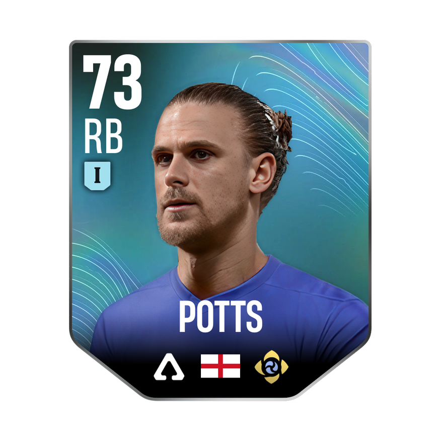 Mastery 1 card is rated 73, he is a 188cm (6’2″) tall RB from England and plays in the league England 2. Brad Potts has 2 cards available in UFL.