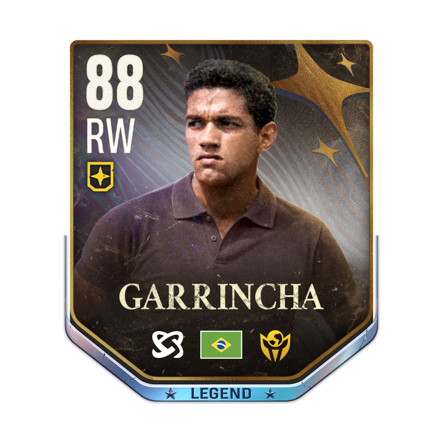 Legend Tier 1 card is rated 88, he is a 169cm (5’7″) tall RW from Brazil and plays in the league World. Garrincha has 2 cards available in UFL. The card also has