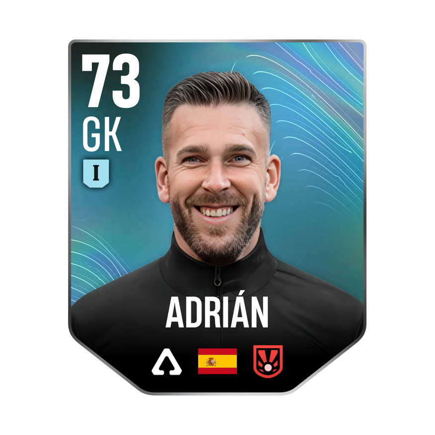 Mastery 1 card is rated 73, he is a 190cm (6’3″) tall GK from Spain and plays in the league Spain 1. Adrián has 2 cards available in UFL.