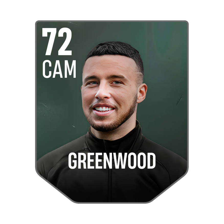 Base card is rated 72, he is a 180cm (5’11″) tall CAM from England and plays in the league World. Sam Greenwood has 2 cards available in UFL.