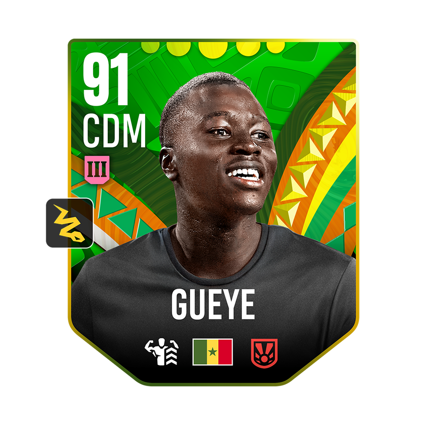 Africa Pack card is rated 91, he is a 189cm (6’2″) tall CDM from Senegal and plays in the league Spain 1. Pape Gueye has 3 cards available in UFL. This card features the